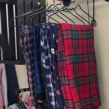 Come check out the fall vibe with pajama pants; available in an array of colors and sizes. You are welcome to visit the shop and find something made just for you.